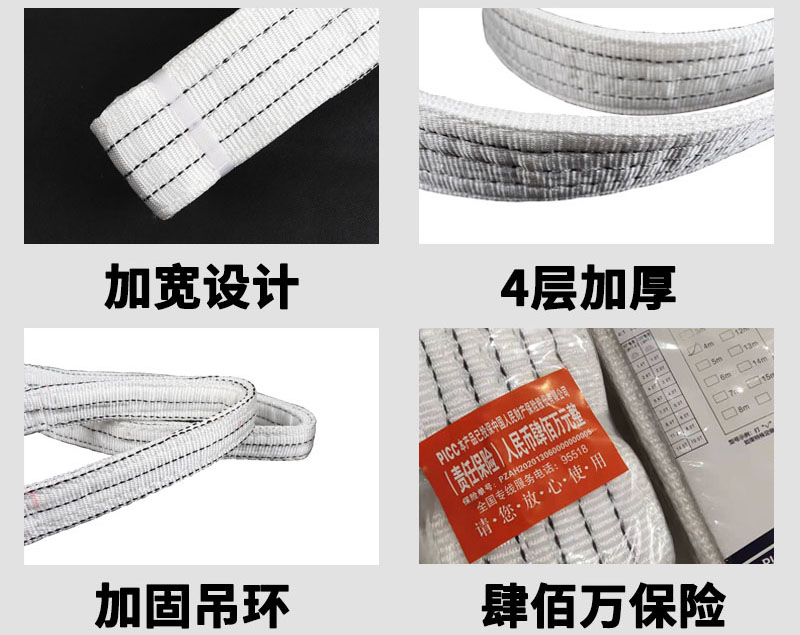 吊裝帶的種類多種多樣,在不同的地方吊不同地物品可以使用不同種類的吊裝帶。吊裝帶分為扁平吊裝帶、圓形吊裝帶,它們還具有自己的子類。如:圓形吊裝帶內(nèi)部承載芯采用無極環(huán)繞以構(gòu)成循環(huán)狀,外部使用***PES織成不受力的套管對(duì)承載苡加以保護(hù),而且在吊裝作用中***很普遍發(fā)生的危險(xiǎn)就是因撞擊而造成的損害,而圓形吊裝帶在強(qiáng)烈撞擊下只會(huì)扁平化,所以風(fēng)險(xiǎn)為零;扁平吊裝帶是采用***PES通過編制縫合制成,并配以不同的縫合方法加工而成,分為單層和雙層。在吊裝作業(yè)時(shí),能夠提供寬闊的、平順的承載表面,在吊裝有柔軟表面的物體時(shí)特別適用,由于沒有與金屬件接觸,對(duì)于被吊物經(jīng)噴處理的表面造成的傷害極其輕微。